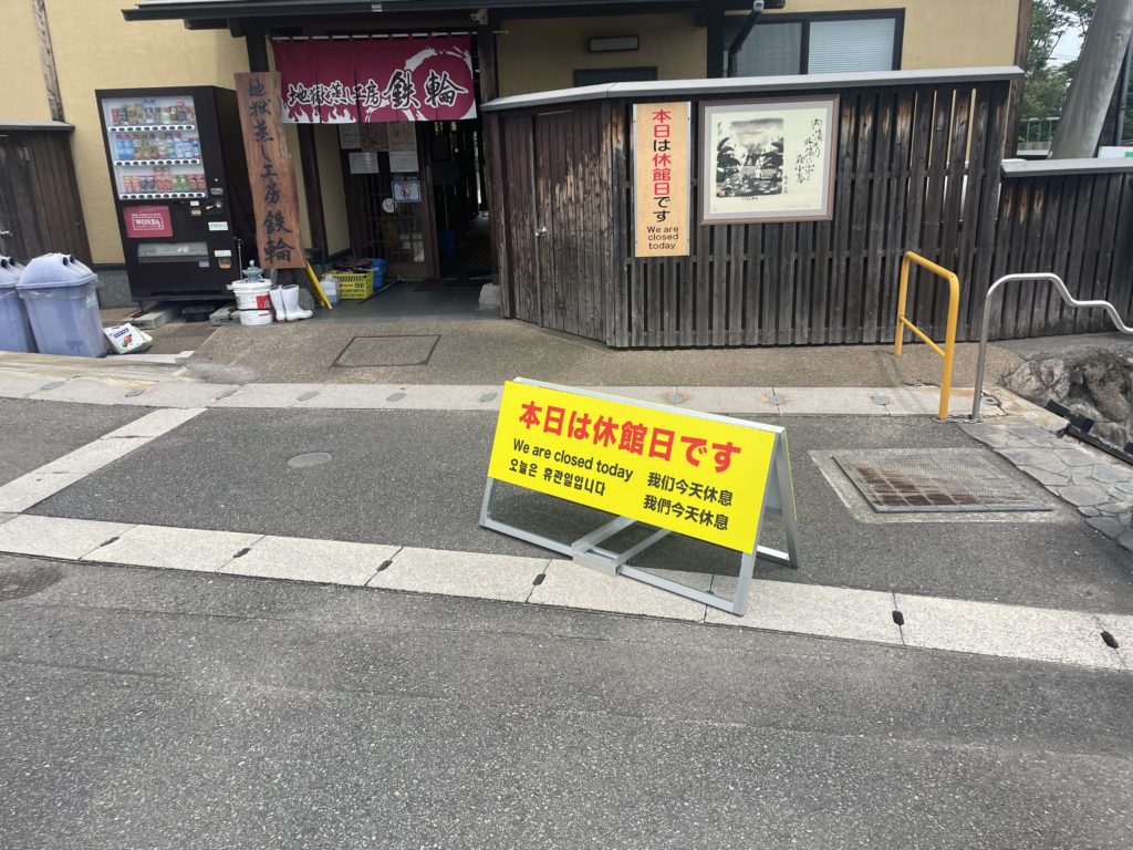 地獄蒸し工房鉄輪様からのご依頼で、休館日告知の看板を製作いたしました。