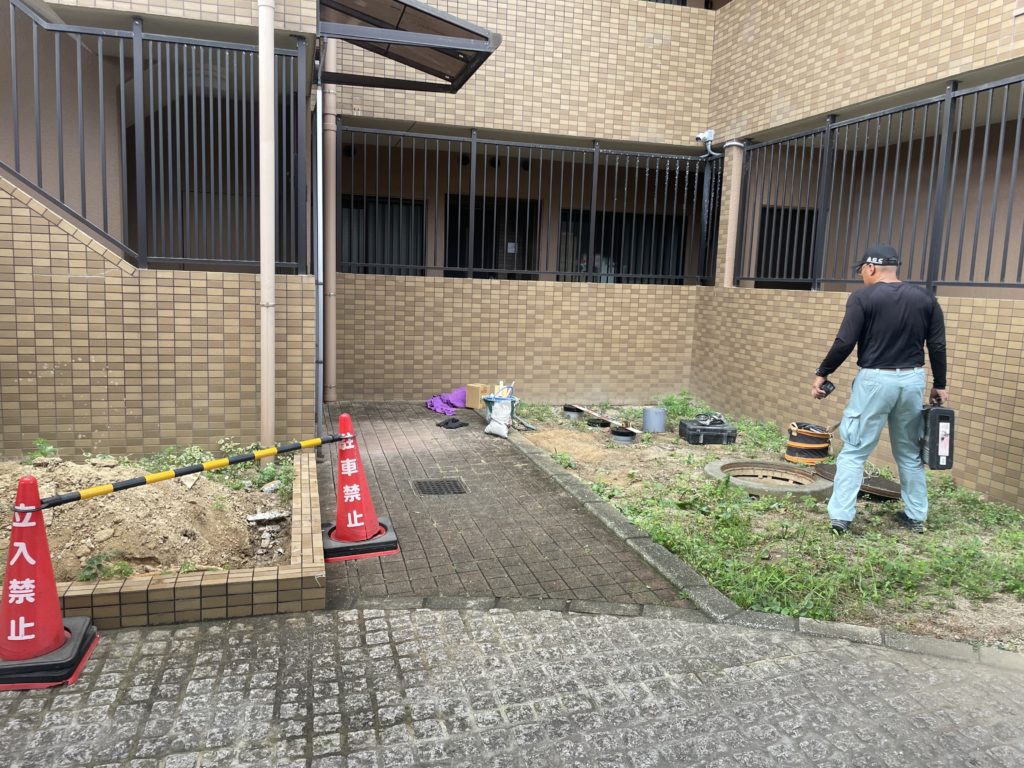 花壇を崩して、アスファルト舗装をしました。