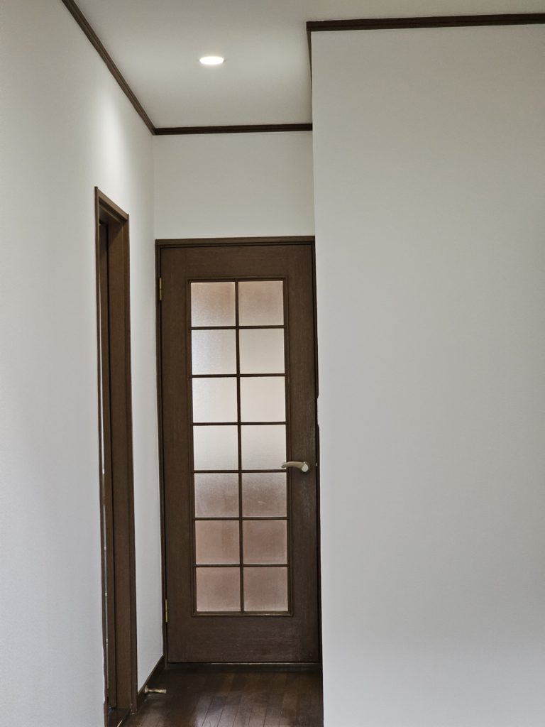 トイレ2カ所の取り換え、洗面台の取り換え、照明の取り換え(吹き抜け、階段、廊下、洗面所、風呂場、リビング、キッチン)、クロスの張り替え(玄関周り、洗面所、トイレ、廊下、階段、リビング、キッチン)、戸棚の金物の交換、インターホン&テレビ配線を壁の中へ移動、その他補修等を10日ほどで完了しました。