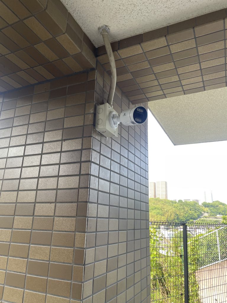 大分市内のマンションの管理組合様からご依頼をいただき、防犯カメラを9台設置いたしました。