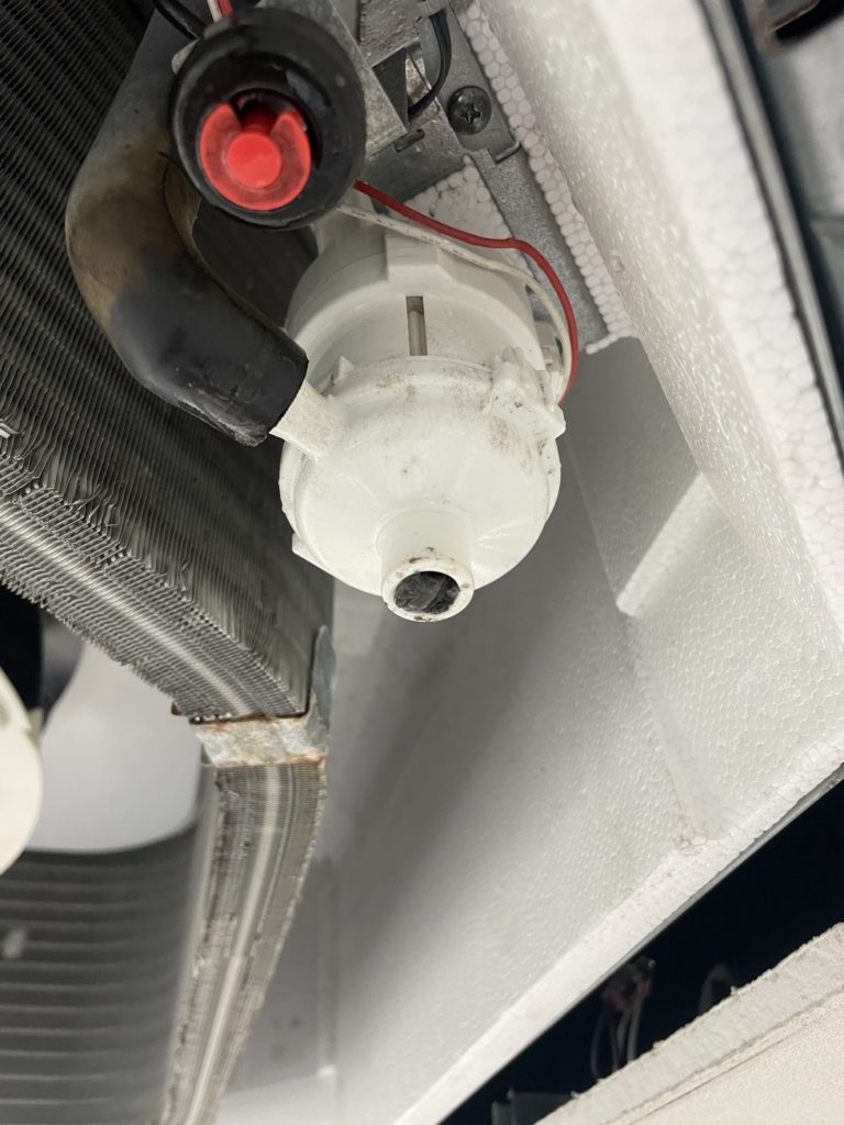 分解して調査をした結果、ドレーンポンプにゴミが詰まって水があふれていることがわかったため、すぐに除去して復旧させました。