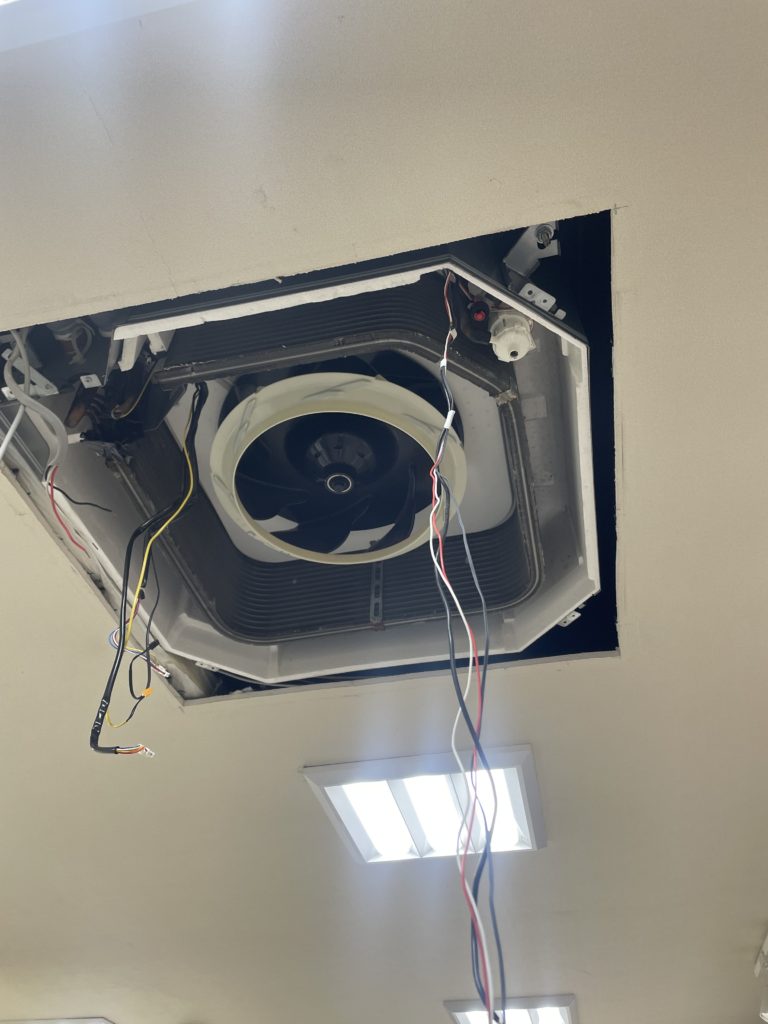 宇佐市の事業所様からのご依頼で、エアコンの水漏れ対応に行きました。